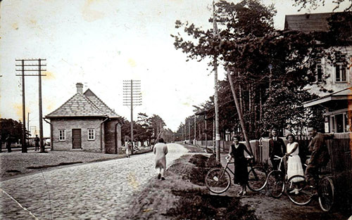 Kuljuse maja (paremal) ja Rahumäe jaam 1930ndatel. Näha ka A. Beeki kiosk.