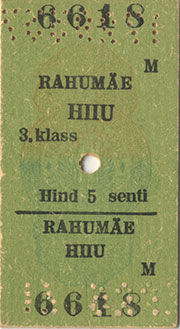 Rahumäe-Hiiu rongipilet 1930. aastatest.