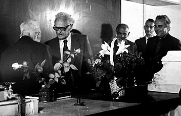 Akadeemik Paul Ariste õnnitlemas. Tema järel