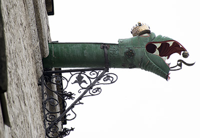 Lohepeakujuline veesüliti aastast 1627 Raekoja põhjafassaadil. Vasksepp Daniel Pöppel. Ervin Sestvergi foto