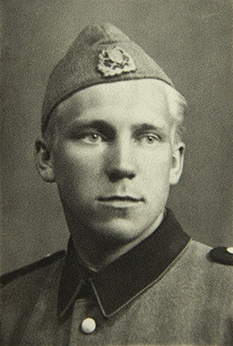 Jah, ma olin Politseipataljonis nr 36. Allkirja ma Saksa armeesse astumisel küll ei andnud. Kui pidulik vande andmise aeg oli, Leedus, siis olin just postil. Hiljem keeldusin ja lubati panna kartsa. Äkki oli aga kiire minek ülesandele ja mind võeti kaasa. Kartsa ei pandud ja allkiri jäigi andmata. Väljaõpet saime muidu maikuu sees Kaunases, kus olime vist vanas tsaariaegses kindluses. Vahepeal oli meie kompanii ka Riias, Lielupe ohvitseride kooli juures väljaõppel. Leedust viidi meid edasi Volgogradi suunal puruks löödud üksuste täienduseks. Kaunasest minnes oli meil raudtee peal veel rongiõnnetus, sest raudtee oli mineeritud ja meie seitse poissi sai seal plahvatuses surma. Muidu oli veduril alati kas üks või kaks tühja vagunit ees, et vedur ise miinile ei sõidaks. Nüüd aga läks õnnetult, miin plahvatas ühe rühma vaguni all.