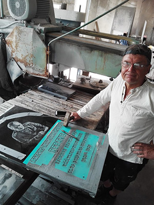 Tarvastu kiviraidur Kalev Pehme mälestusplaati meisterdamas.