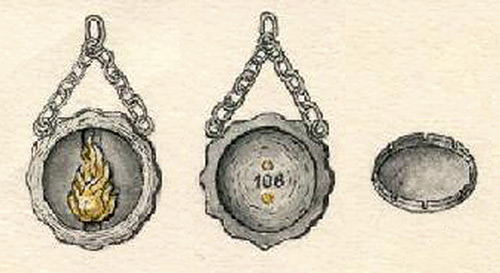 Hiie liige kandis hõbedast medaljoni – tõletit. Sellel on kujutatud kuldne leek, mida läbib hõbedane tee. Tõletis on raasuke püha mulda.