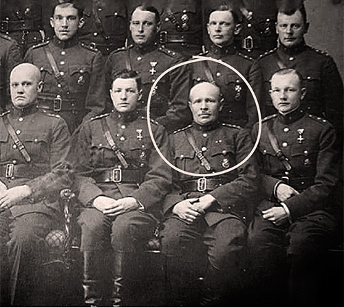 Pioneerpataljoni ohvitserid. Kapten Johannes Pedaja esireas paremalt teine, tema kõrval vasakul Nikolai Trankman.