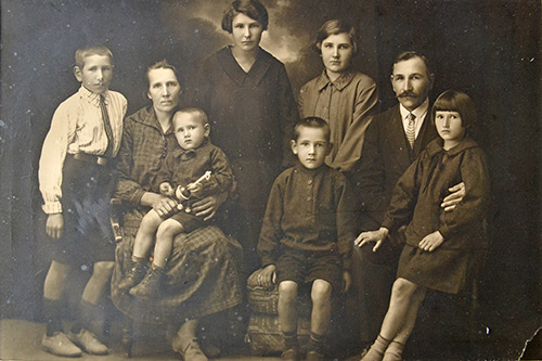 Perekonnapilt, tehtud Narva kuulsa fotograafi Johannes Kärneri ateljees. Pesamuna Endel istub ema süles.